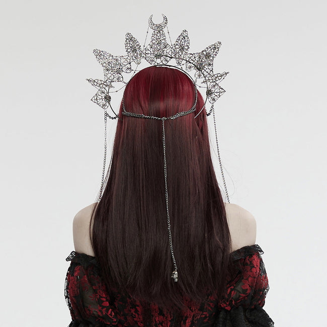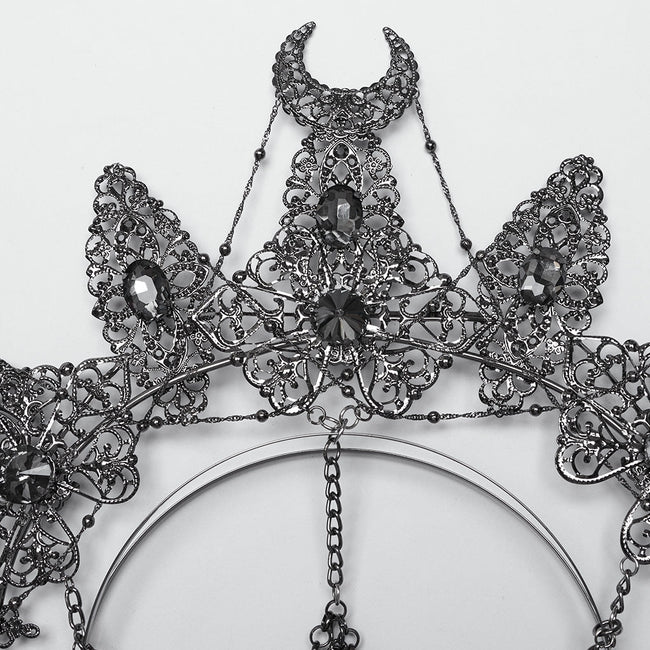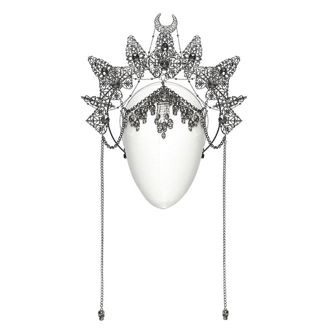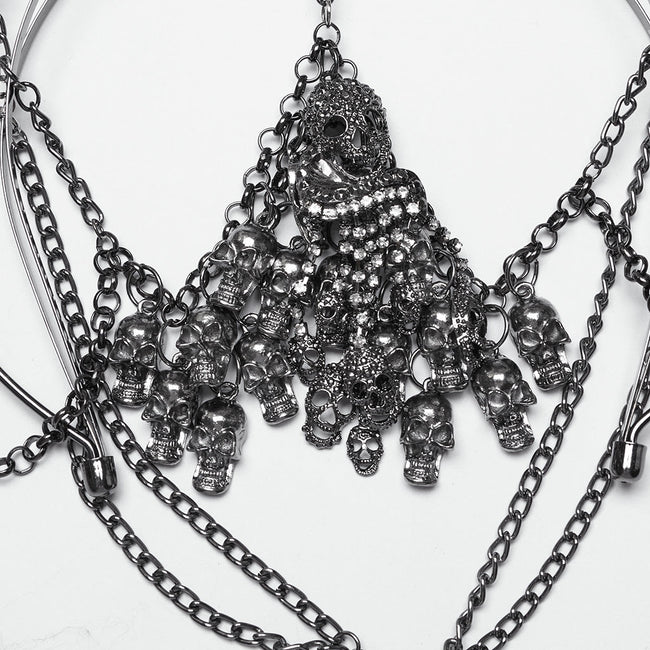 4. Skulls pendants of different shapes in the forehead chains create rich visual layers.