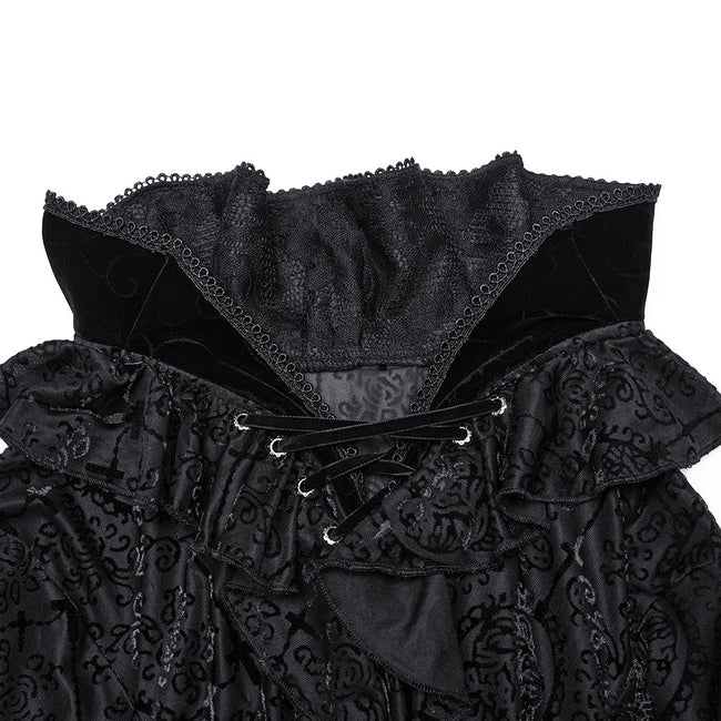 2. The ruffled edge extends to the high collar, adding a sense of mystery, and the collar is decorated with lace along the edge