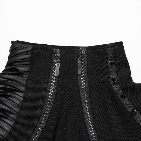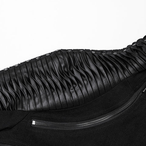 1. Made of twill woven fabric,rubberrized imitation leather knitted fabric and mesh.2. Handsome and ultra short silhouette, personalized double zippers high neck design.3. 3D shoulder pleating...