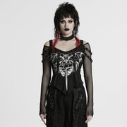 T-Shirt mit Punk-Fledermaus-Totenkopf-Aufdruck