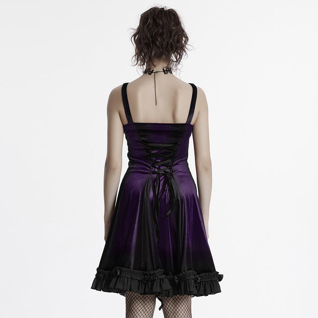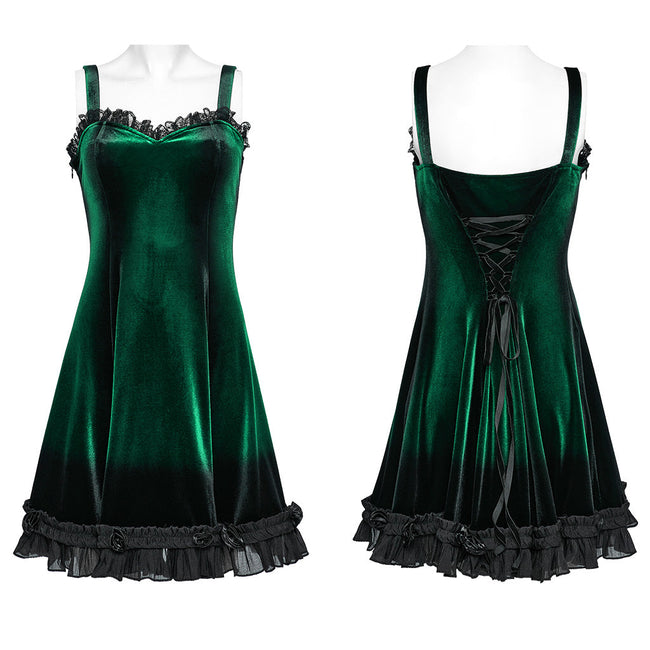 3. Collected waist and A-line shape, lace on the chest and ruffled lace on the hem highlight a playful look.